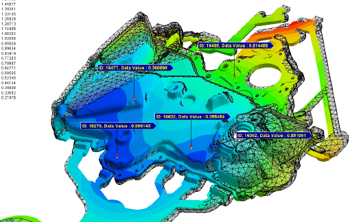 After the solidification is completed, deformation and stress distribution due to temperature difference can be predicted based on the thermal analysis data from the product while using FEM meshing method.